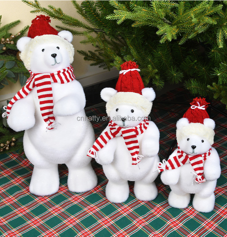 Großhandel Weihnachtsdekorationen im nordischen Stil weiße beflockte Schaumstofffiguren Eisbär und Elfenpuppen zum Verschenken zu Weihnachten