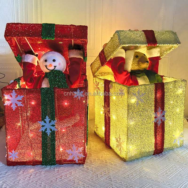 Weihnachten Teddybär Glas Ornament Big Bear Serie UV-gedruckte Dekoration für Kinder Urlaub Szene in Arrangement Box verpackt